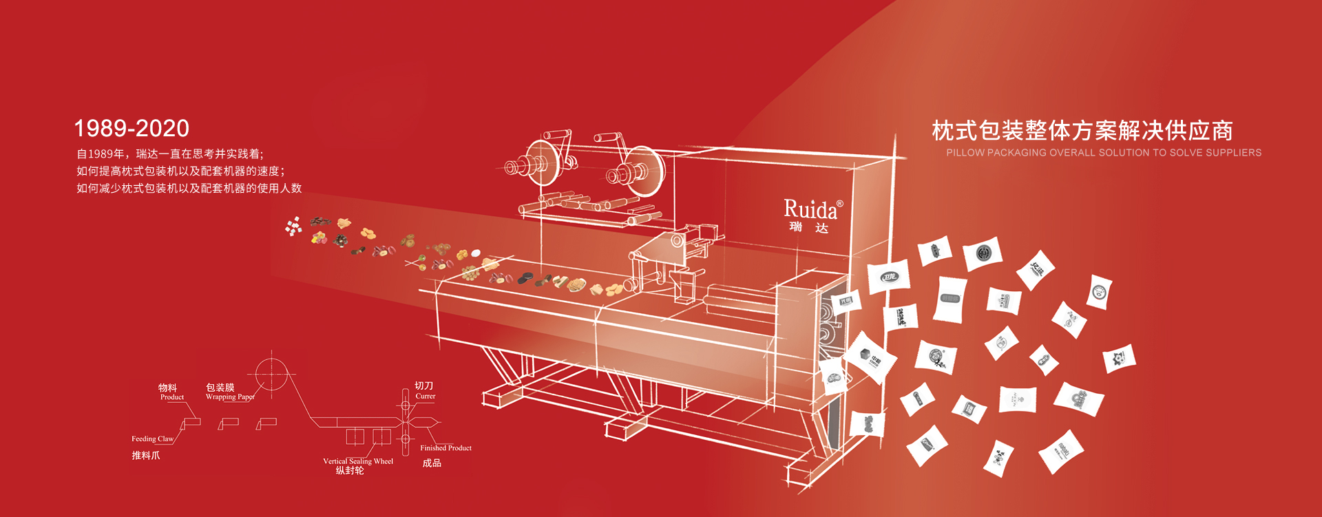 Wenzhou ruida machinery co., LTD. (formerly ruian precision machinery factory), founded in 1989, after more than 30 years of development and expansion, is the pillow packaging machine and its supporting machinery focus on the manufacturer. At present, the enterprise technology r&d personnel account for 32% of all employees, has a strong research and development ability, and has a group of professionals with technical expertise. The company has diversified testing methods and stable production process; Stable product performance, stable quality. Founded more than 30 years ago, ruida people always adhere to the "world is changing, the spirit of the pursuit of product quality has always been the same", always adhering to the belief when ruida was born - "excellence", and constantly enrich its connotation. The enterprise takes the market as the guidance, by the sincere letter travel the world, the product unceasingly advances toward the high quality, the high performance, wins the profession and the related profession's trust and the high praise with its intimate service. The company has passed the CE certification and has the right to import and export its products to 31 provinces and cities in China and exported to southeast Asia, South Korea, Europe, America, Russia, the Middle East and other countries and regions. The enterprise with "ruida", "refinement" to create a brand, science and technology for development, and hope to sincerely cooperate with customers at home and abroad, hand in hand, common development!